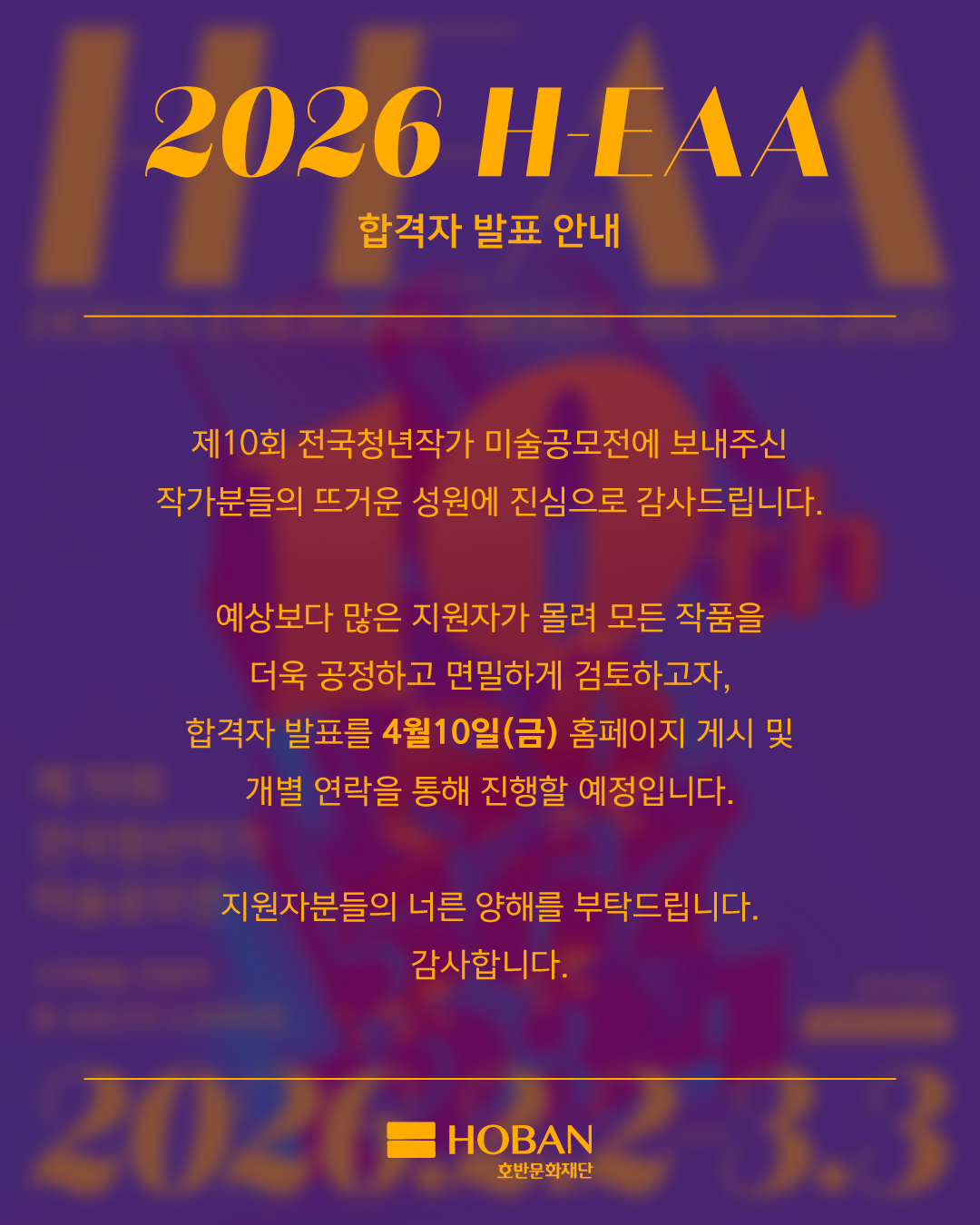 [H-EAA] 2026 H-EAA 합격자 발표 지연 안내